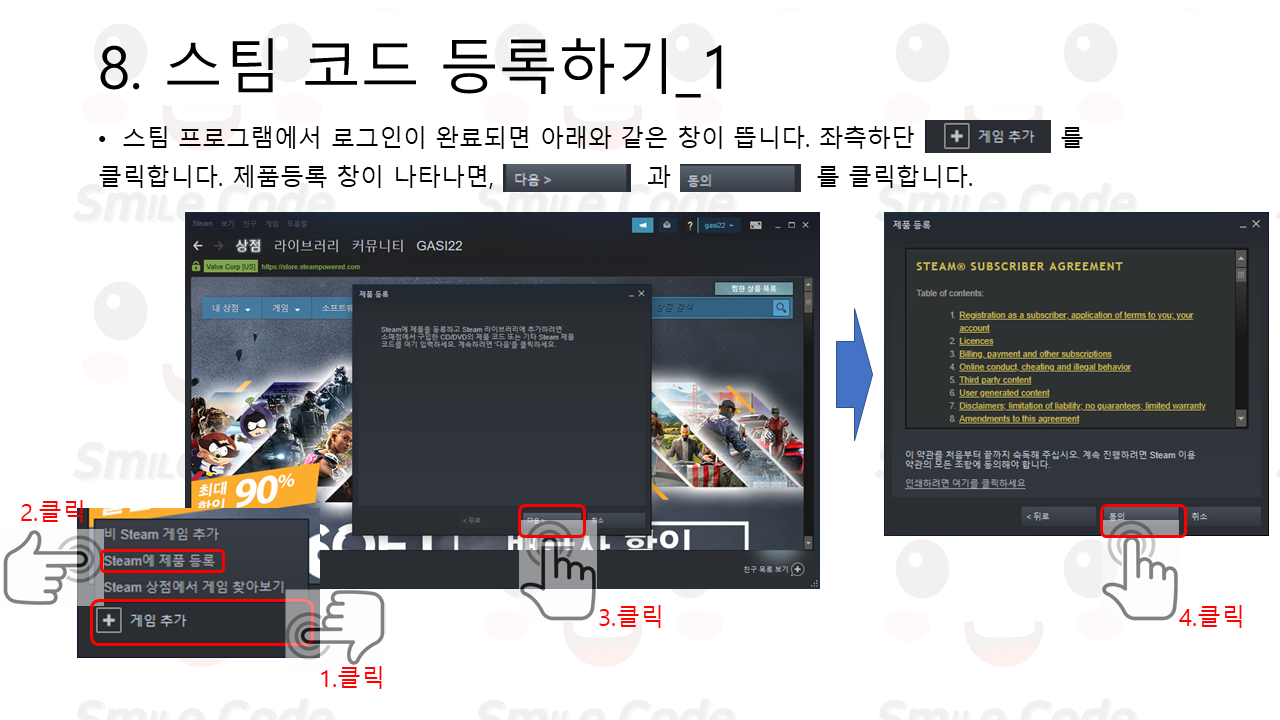 웹(브라우저)에서 시디키 등록을 원하시면 아래링크를 클릭하세요(웹에서는 게임설치 및 플레이가 불가능하기 때문에 스팀프로그램을 설치 후 게임설치와 플레이가 가능합니다)