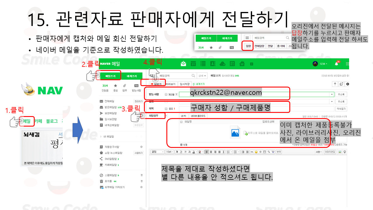 번거롭더라도 해당캡처는 판매자의 메일주소나 카카오톡으로 전달 주시면 빠른처리가 가능합니다