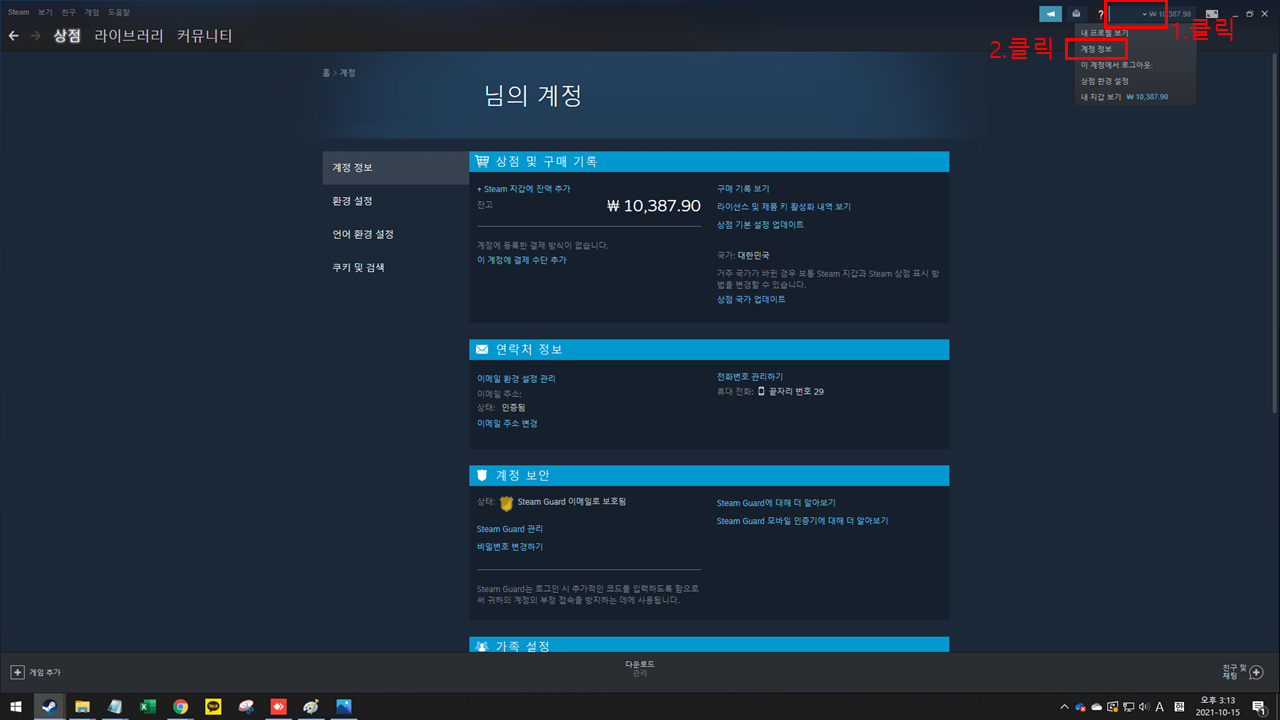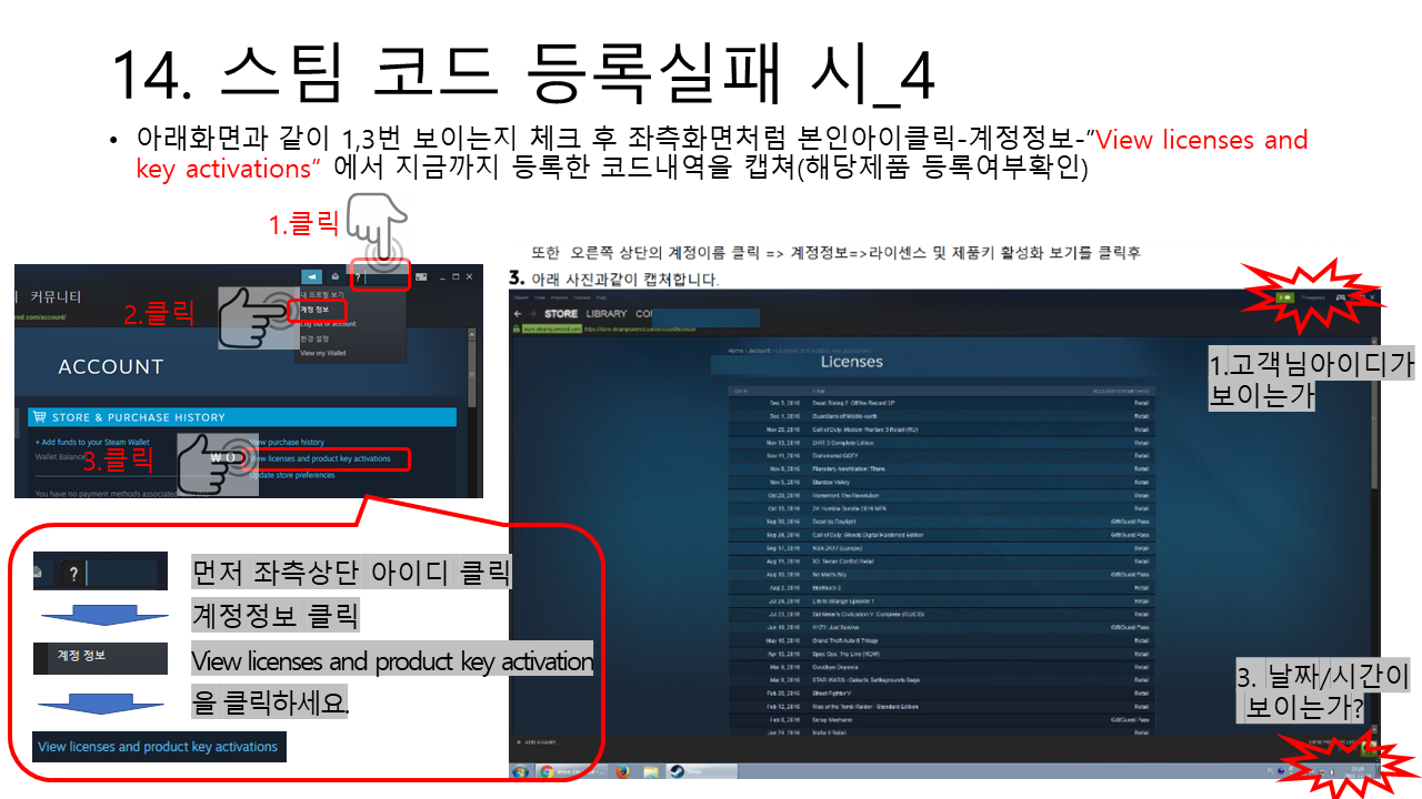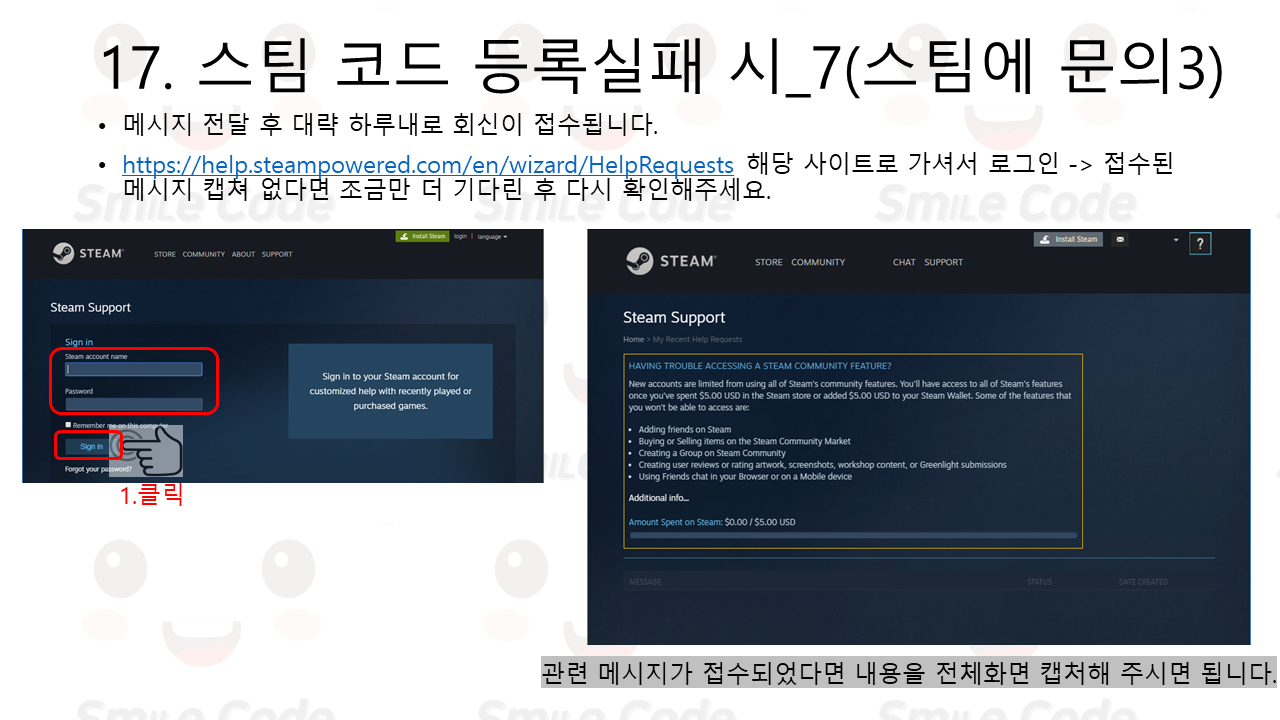 접속 후 Contact steam support를 클릭해주시면됩니다
