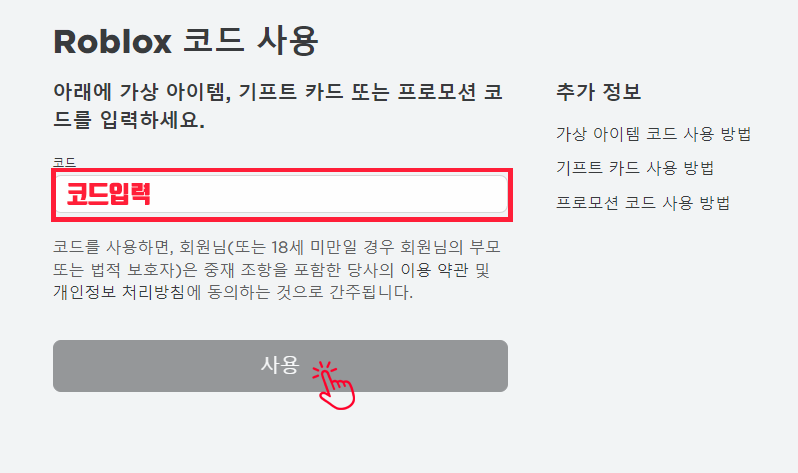 로블록스 기프트 카드 등록 절차서