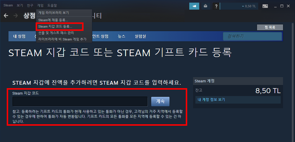 스팀 월렛 기프트 등록방법
