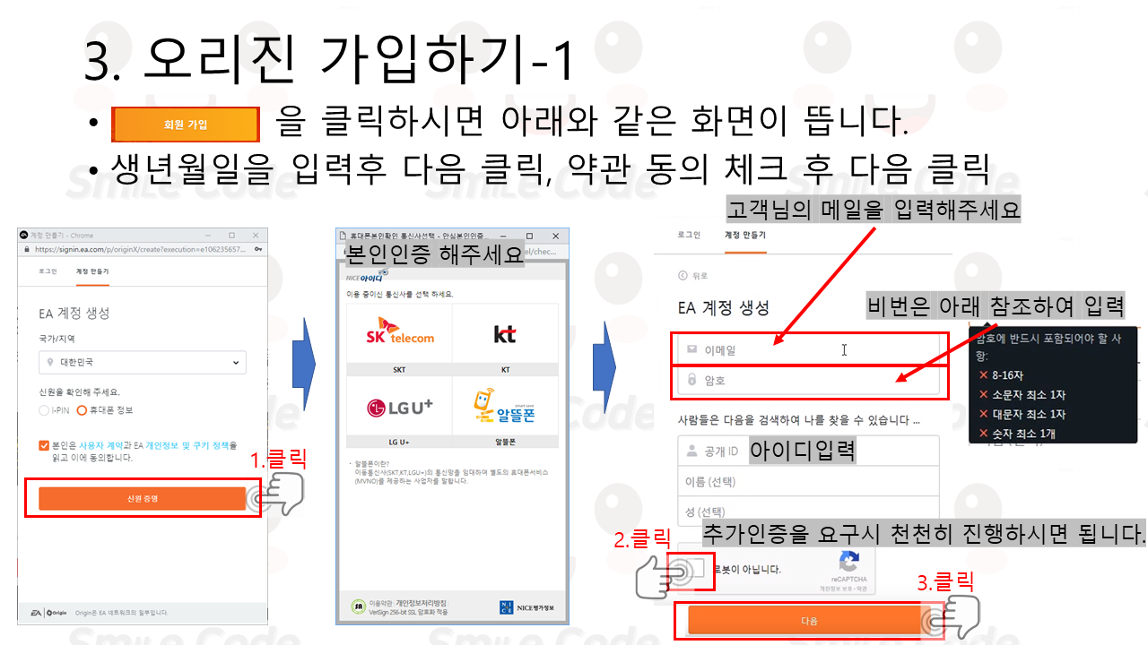 오리진의 경우 가입시 서버등의 문제로 가입이 어려울경우가 있습니다.