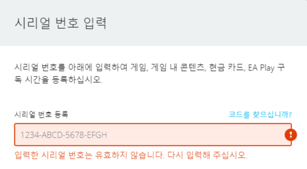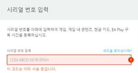 일부 시디키가 오리진어플에서 유효하지 않은키라는 메세지가 뜰경우 아래 웹에서도 등록시도해주세요