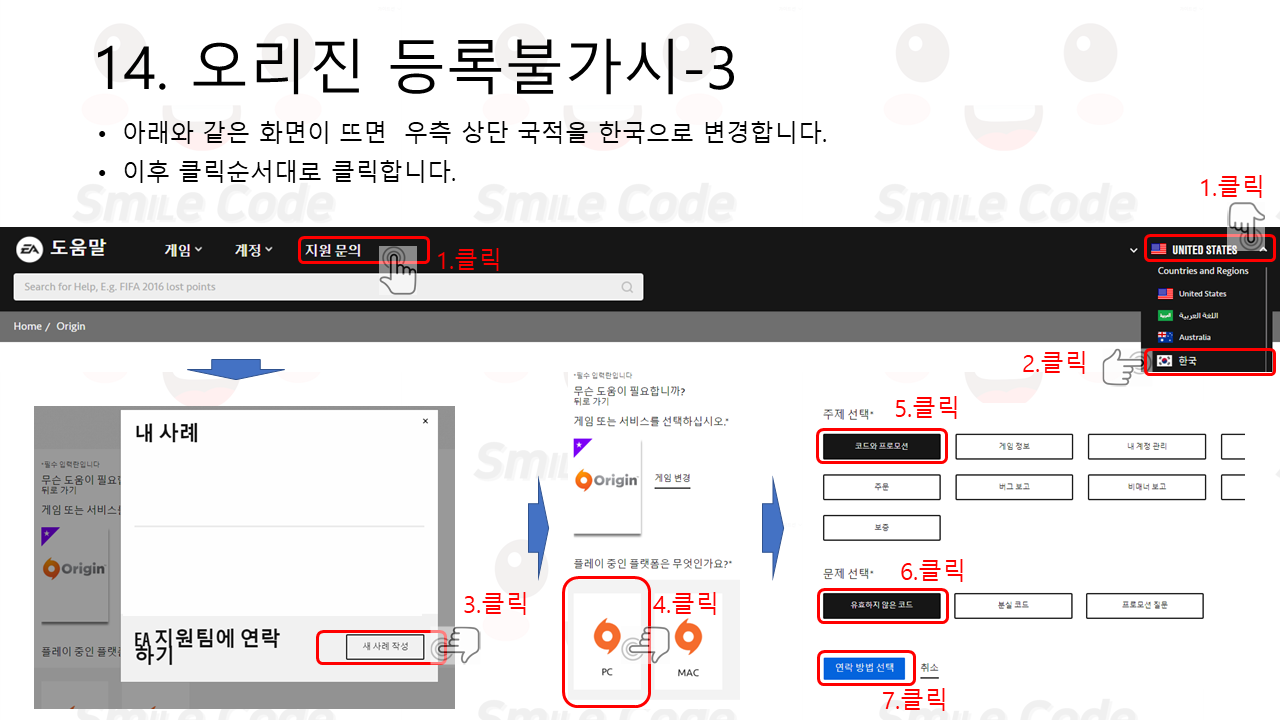 - 위 3개의 캡처 후 아래의 링크로 가셔서 3개의 캡처화면과 함께 오리진에 해당문제를 문의합니다.