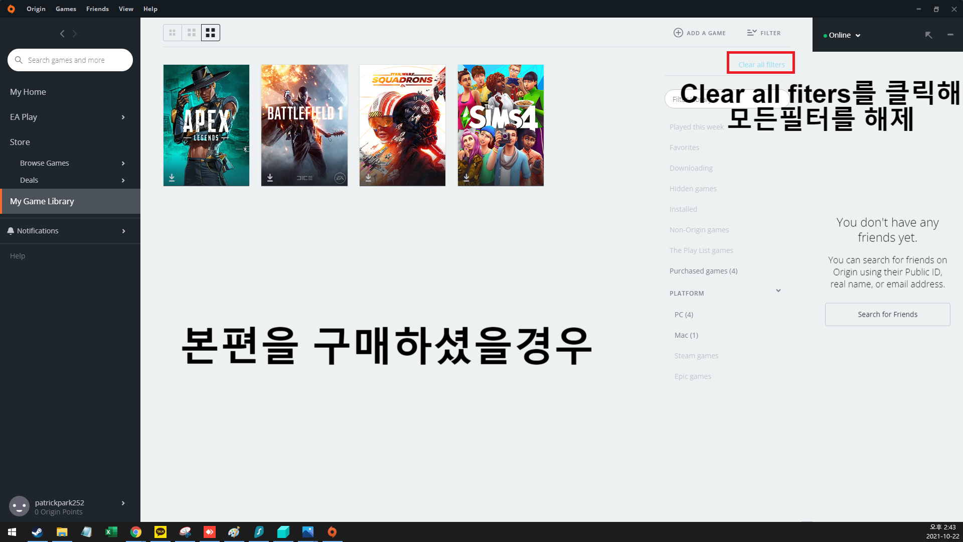 저희는 오리진 고객센터가 아니기 때문에 도움을 드릴수 있으나 정확한 해결책을 가지고 있지 않습니다. 양해 부탁드립니다.