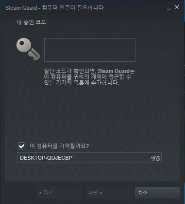 사용하지 않던 다른 PC에서 스팀 로그인을 하셨다면 본인확인을 위해 인증을 진행합니다