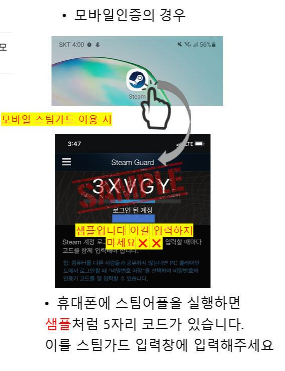 b. 휴대폰 스팀어플로 인증번호 올 경우